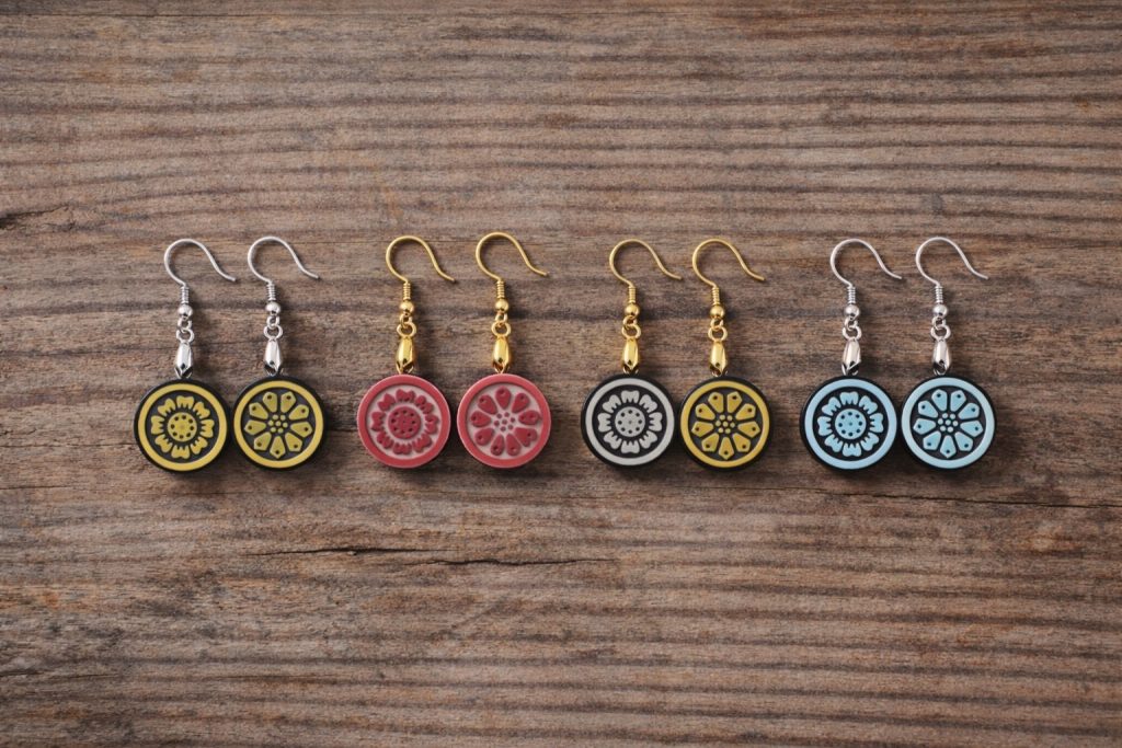 古代瓦を代表する「素弁蓮華文軒丸瓦」と「複弁蓮華文軒丸瓦」をモチーフにしたピアスが完成!