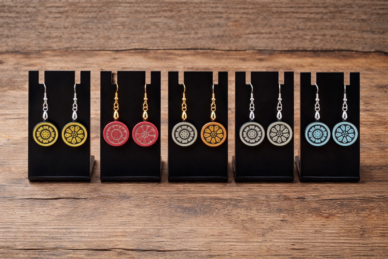 古代瓦を代表する「素弁蓮華文軒丸瓦」と「複弁蓮華文軒丸瓦」をモチーフにしたピアスが完成!