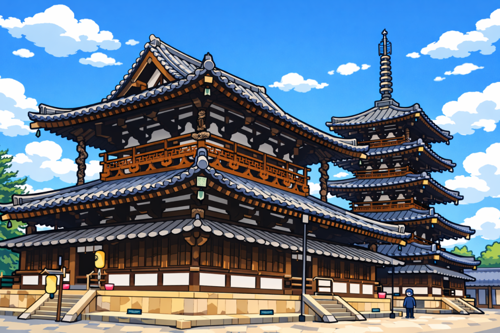 世界最古の木造建築物と数多くの寺宝を持ち、わが国最初の世界文化遺産として1993年に登録されたことでも有名です。
