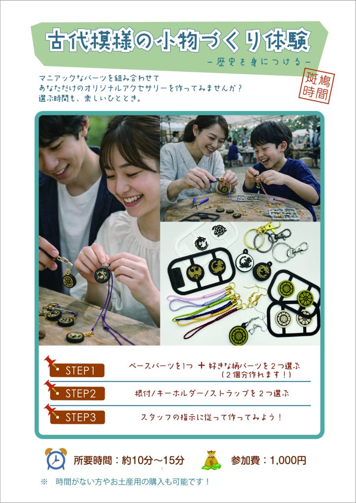 また、「古代模様の小物作り体験」も同時開催します。